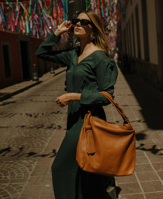 Shoulder Bag Bacalar Bis Burgundy / Maroon Leather