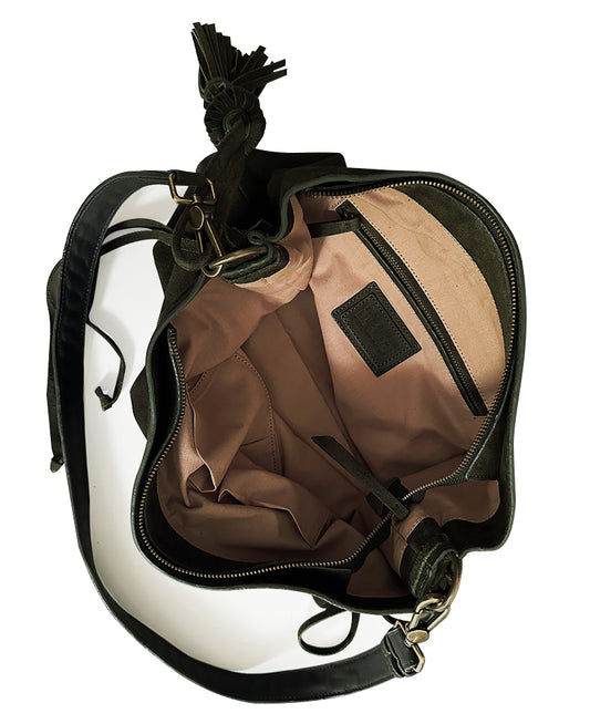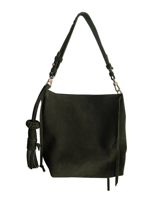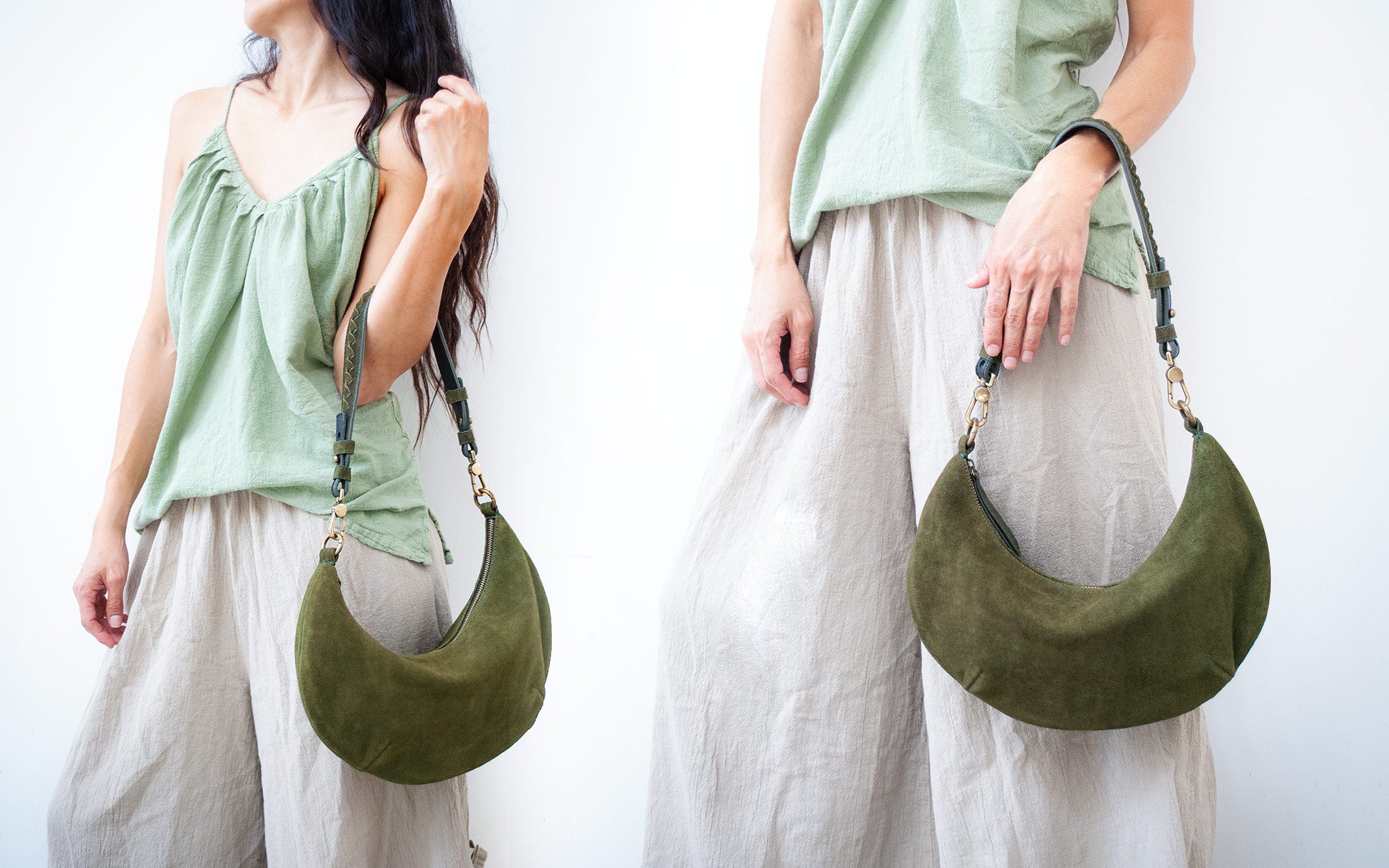 → PRE-ORDER Bacalar Shoulder Bag: Soft Olive Green Genuine Suede