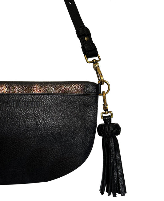 Metallic Gold & Black Soft Leather Sling Bag | Adjustable Crossbody