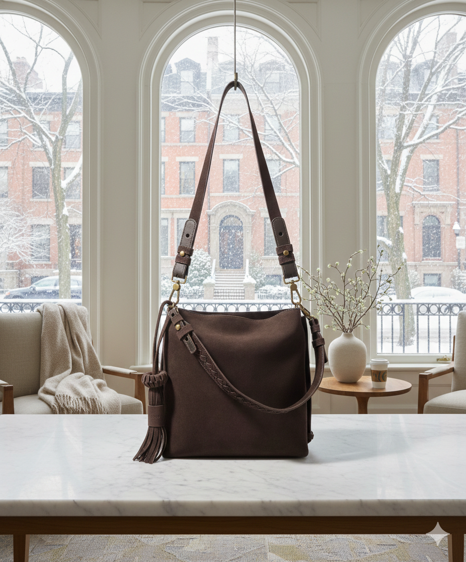 → PRE-ORDER Bacalar Shoulder Bag: Soft Espresso Coffee Genuine Suede