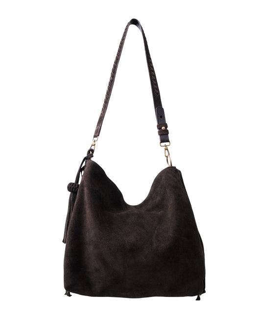 Bacalar Shoulder Bag: Soft Espresso Coffee Genuine Suede
