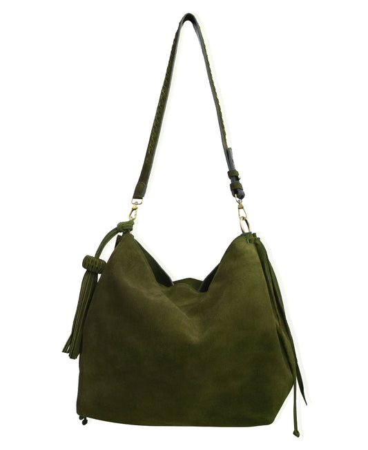 Bacalar Shoulder Bag: Soft Olive Green Genuine Suede