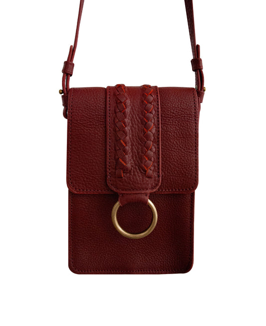 Burgundy/Maroon AMY Leather Crossbody Bag for Phone