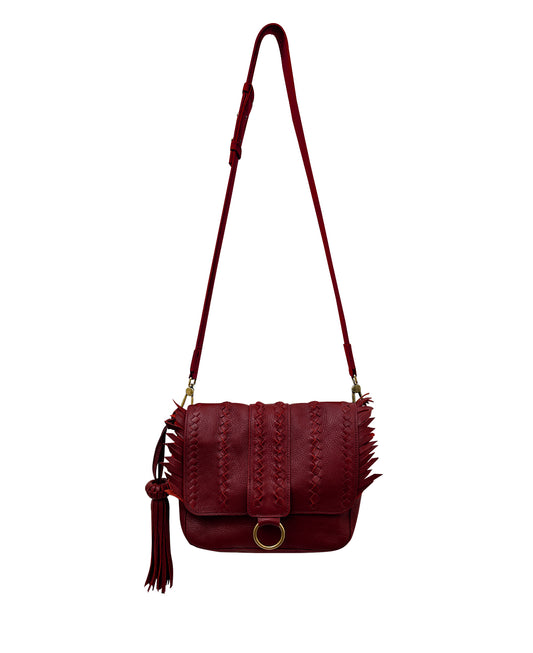 Burgundy / Maroon SENECA Leather Bag with Braids & Frings Details