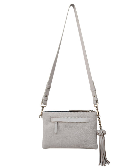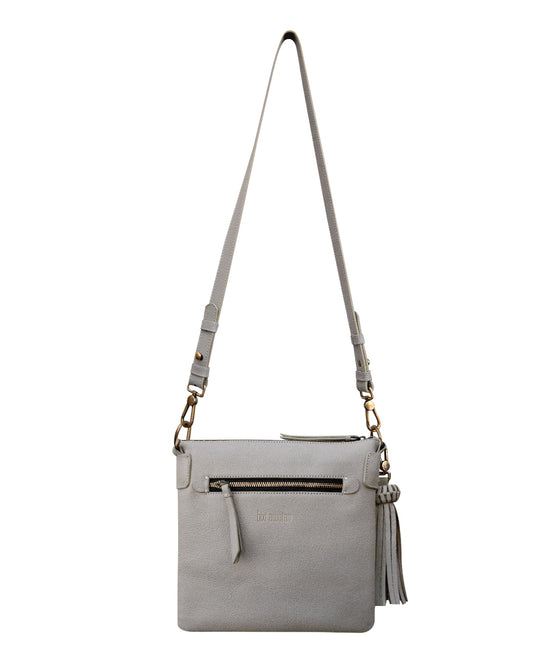 KAHLO Handcrafted Crossbody Bag - Gray & Furry Gold Leather